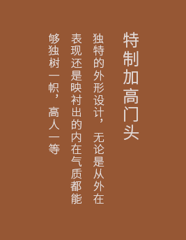 | 秉承中國“藏風聚福”的傳統理念,研發(fā)出特殊的設計工藝,無需更改門洞尺寸,加高門框處理,添財納吉祥、五福入豪門 |